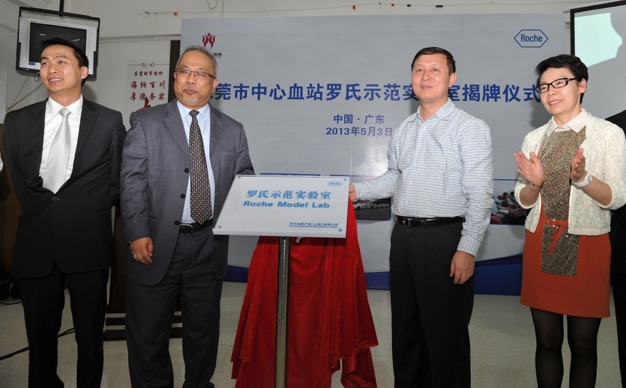 (2013年5月3日,东莞)今天,全国血站系统首家“罗氏示范实验室”在东莞市中心血站揭牌成立,这标志着东莞市中心血站不仅在检测技术方面实现了与国际接轨,在质量管理、人才培养、科研建设等方面也走在全国前列。通过对实验室的全方位科学管理,提高血液检测的质量,全面保障东莞及周边地区的用血安全。