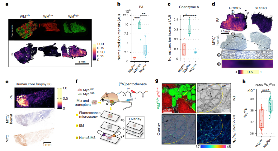 通过质谱成像技术对两者分析发现,维生素B5与小鼠和人类移植乳腺癌的MYC高表达区域相关。