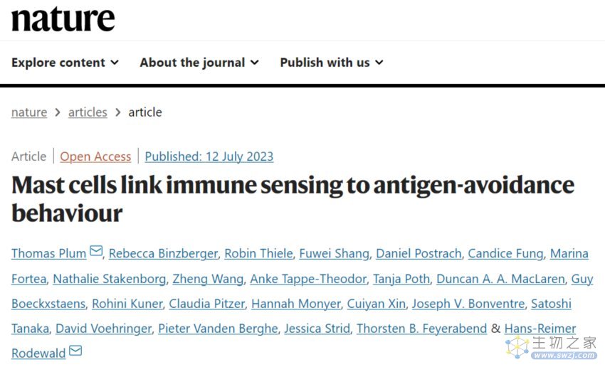 一项研究来自德国癌症研究中心,论文题为:Mast cells link immune sensing to antigen-avoidance behaviour。