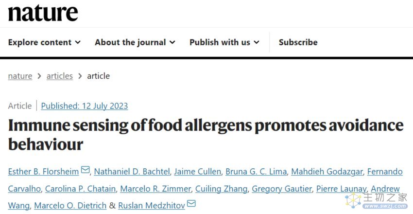 另一项研究来自耶鲁大学医学院,论文题为:Immune sensing of food allergens promotes avoidance behaviour。