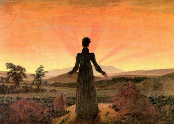 研究表明,在大型火山冷却之前,火山喷发给全球日落的颜色所带来的影响能够长达数年之久。火山喷发出的硫酸液滴进入大气中散射成蓝色光线,形成了深红色的黄昏。受这些令人震撼的黄昏景象的启发,著名的画家们把这火一般的颜色用于他们画作的背景中,《夕阳下的女人》便应运而生。