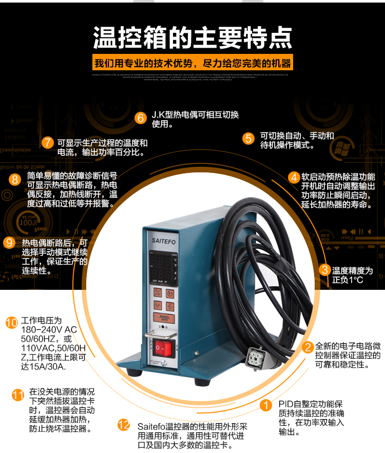 4.软启动预热除湿功能,开机时自动调整输出功率防止瞬间启动,延长加热器的寿命.