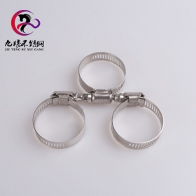 佛山九腾不锈钢有限公司专业生产批发304喉箍、喉箍在日常生活中大家接触的比较多、我公司主要生产美式喉箍和欧式喉箍。用于管道锁紧、环保工程、汽车、拖拉机、轮船、汽油机、柴油机、喷灌机等各种机械设备上。喉箍适用范围广,抗扭和耐压,喉箍扭转力矩均衡,锁紧牢固,严密,调节范围大,适用于30mm以上的软硬管连接的紧固件,装配后外观美观。特点:蜗杆摩擦力小,适用于高中高档车型或防腐材料部位连接。所有产品承受阻力强、耐高压、抗腐蚀、安全可靠、品质优良` 价格实惠。