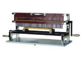 2.一定不要碰伤冲头尖端以免失去精度,导致设备无法使用。它是通过1根带螺旋带的轴旋转,在不同的角度抬起冲头垂直上升下降,借助弹簧的弹力冲击打点,手柄摇动一周在试样上打出直线排列,间距为10毫米,共40点=400毫米长。