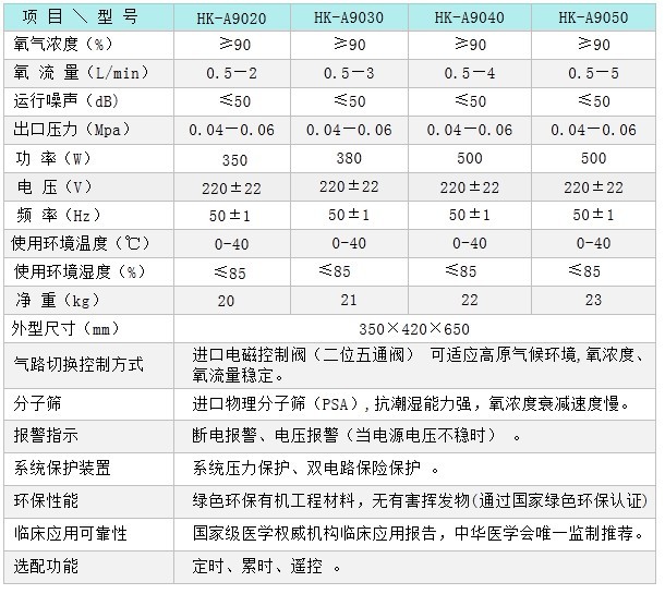 氧气浓度 | 返回顶部 ≥90% |