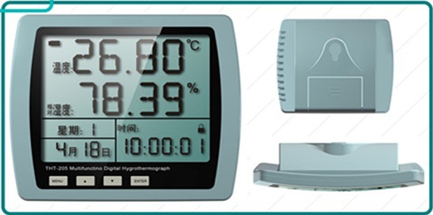 (1)全中文菜单,超大液晶屏幕显示:温度、湿度、露点、年月日、时间、星期。