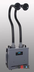 锡焊烟雾净化系统由净化器主机、除烟手臂、除烟罩、管道及支架等组成,能实现焊接烟雾的提取、输送、净化的功能。该系统是专门为手工焊接烟雾的净化而设计的,分为KFC系列单、双工位烟雾净化系统和KFF系列多工位烟雾净化系统,均采用进口专用风机,具有风量大,风压高,噪音小,可连续运转的特点;过滤系统由预过滤和主过滤两部分组成,预过滤能吸附比较大的粒子来避免主过滤过早的被堵塞;主过滤器由HEPA高效过滤芯和化学滤芯组成,HEPA高效过滤芯对0.3微米颗粒的过滤效率为99.997%,化学滤芯能有效的去除气流中的有害气体。