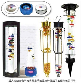 17世纪初,意大利物理学家伽利略发明了温度计,人类从此开始了温度测量的时代。什么?你说你不知道温度计是伽利略发明的?那就先来科普一下吧。传说伽利略在做实验的时候,发现空气具有受热膨胀,遇冷收缩的性质,他就利用这一性质发明了空气温度计。一个像鸡蛋一样大小的空心玻璃球连着一根细细的开口玻璃管,伽利略先用手把玻璃球捂热,球里的空气就膨胀了,一部分从玻璃管里溜了出来,这时把玻璃管倒插入一只装有水的瓶子里,当手离开玻璃球以后,球里的空气冷却,瓶里的水就上升到玻璃管里,一具温度计就这么做成了。天热的时候,玻璃球里的空气膨胀,玻璃管里的水就会下降;天冷的时候,玻璃球里的空气收缩,玻璃管里的水就会升高。只要用尺子量一下玻璃管里水的高度,就可以知道天气的冷和热的程度了,这便是温度计的老祖宗。